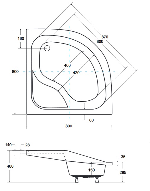 Besco Oliver I Brodzik Półokrągły 80x80 biały BAO-80-NR