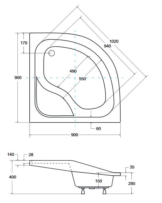 • Kształt: Półokrągły
