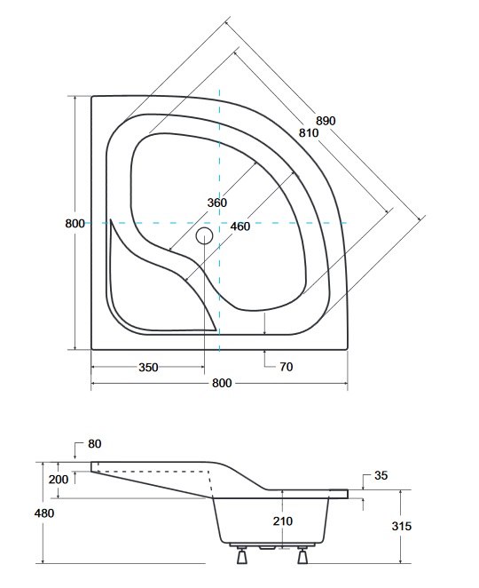 Besco Oliver II Brodzik Półokrągły 80x80 biały BAO-80-II