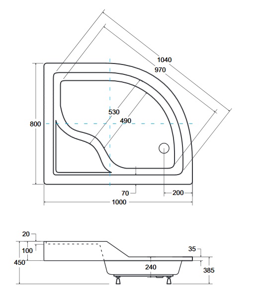 Besco Maxi Brodzik Asymetryczny Prawy 100x80 biały BAM-100-NP