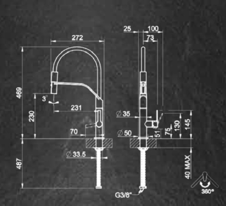 - Zasięg obrotu wylewki: 360º