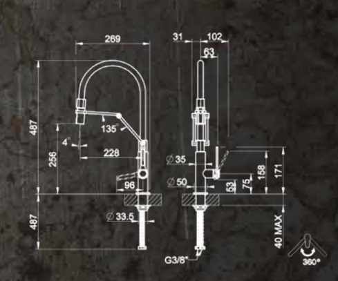 Gessi Officine Bateria kuchenna jednouchwytowa 1-otworowa Finox/Matte Black 60055.599