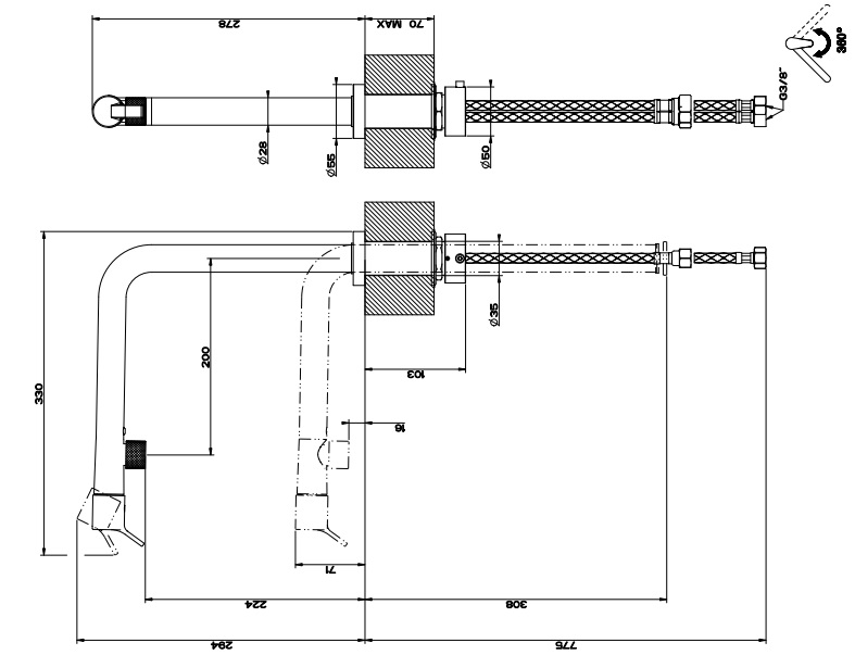 Gessi SU&GIU Bateria kuchenna jednouchwytowa 1-otworowa Chrom 60071.031