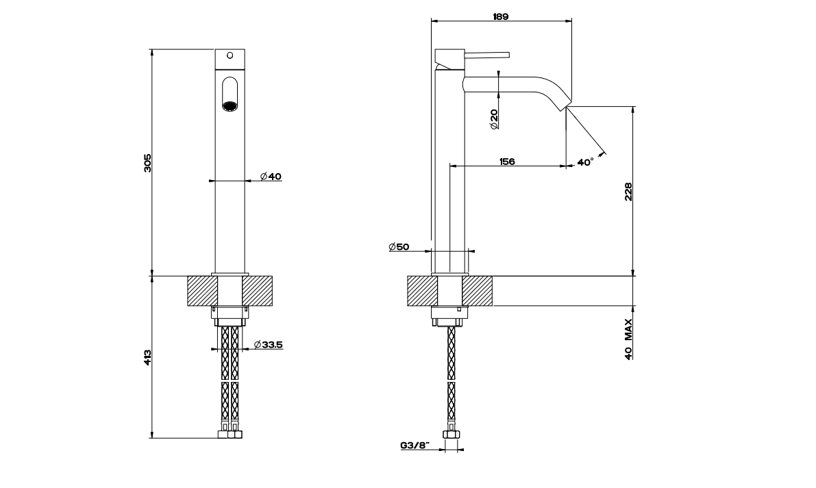 Gessi 316 Flessa Bateria umywalkowa jednouchwytowa bez korka Steel Brushed 54006.239 / 54006239