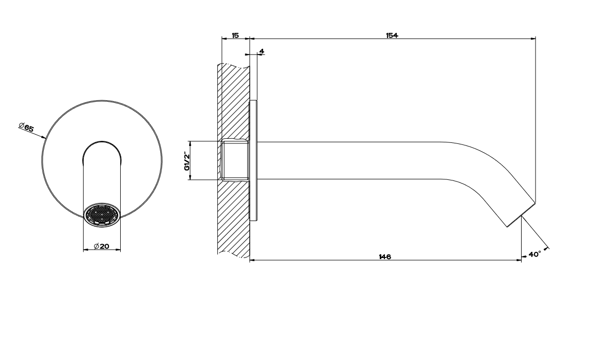 Odległość od ściany: 154 mm