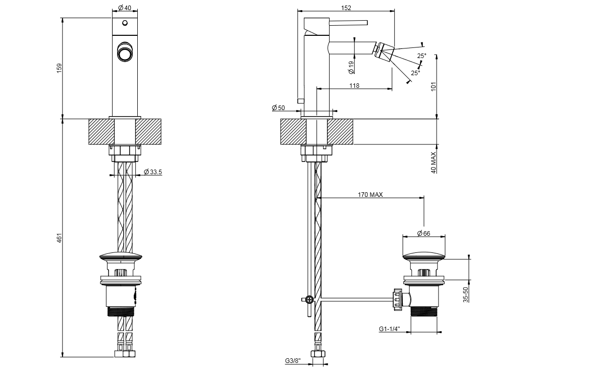 Gessi 316 Flessa Bateria bidetowa jednouchwytowa Steel Brushed 54007.239 / 54007239