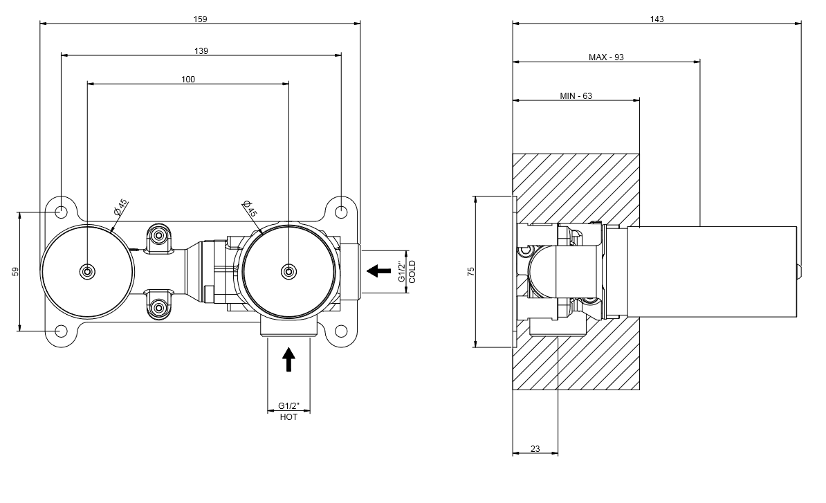 Gessi 316 Element podtynkowy baterii umywalkowej 54197.239 / 54197239
