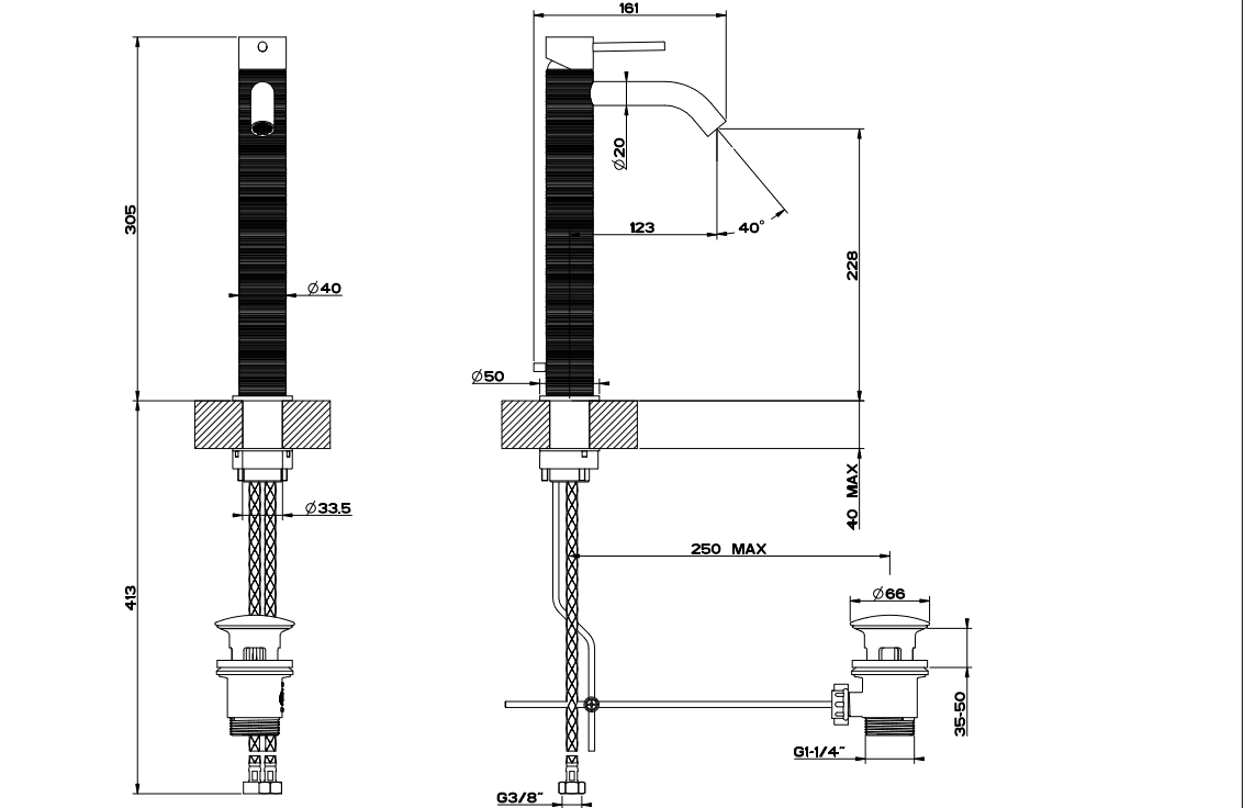 Gessi 316 Trame Bateria umywalkowa jednouchwytowa z korkiem Steel Brushed 54304.239 / 54304239