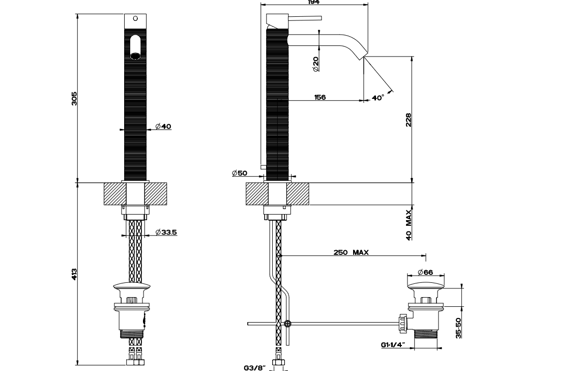 Gessi 316 Trame Bateria umywalkowa jednouchwytowa z korkiem Steel Brushed 54303.239 / 54303239