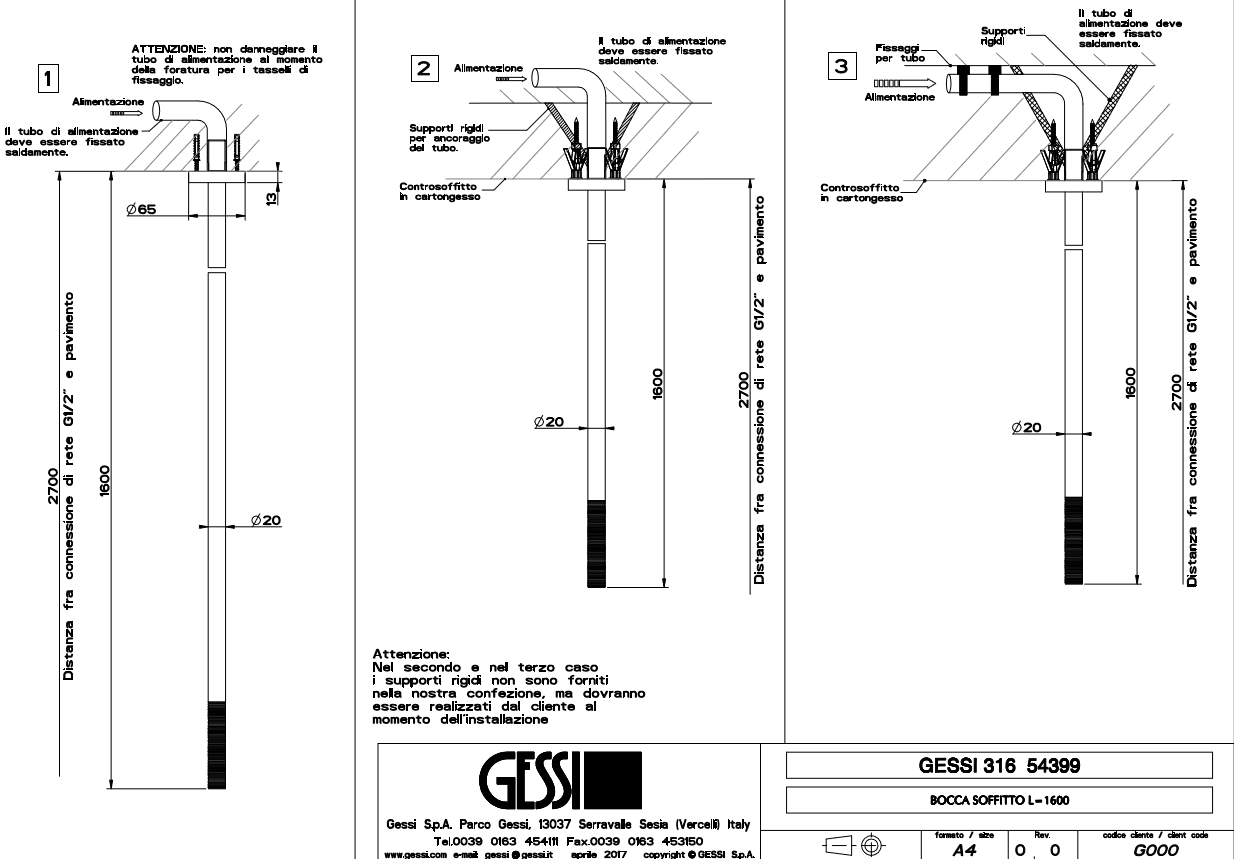 Gessi 316 Trame Wylewka sufitowa Steel Brushed 54399.239 / 54399239