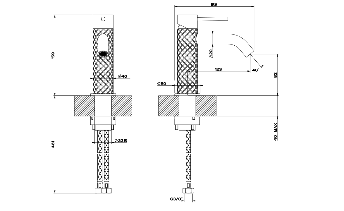 Gessi 316 Intreccio Bateria umywalkowa jednouchwytowa bez korka Steel Brushed 54102.239 / 54102239