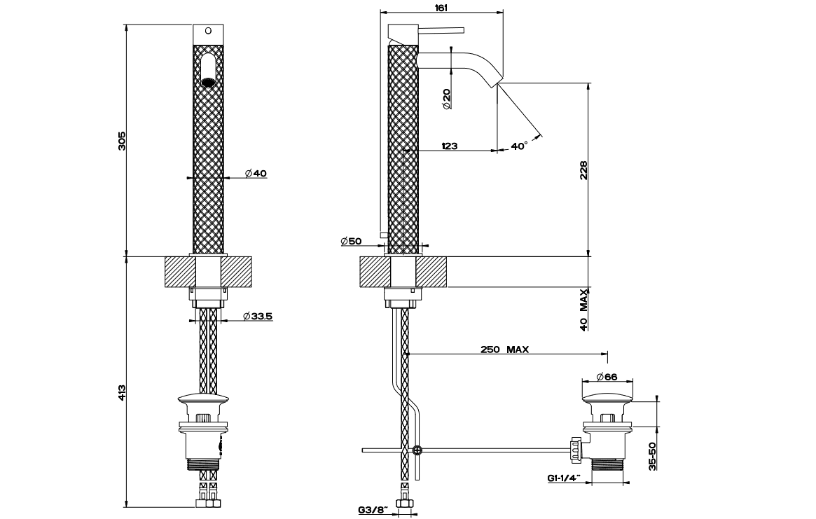 Gessi 316 Intreccio Bateria umywalkowa jednouchwytowa z korkiem Steel Brushed 54104.239 / 54104239