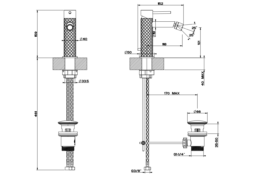 Gessi 316 Intreccio Bateria bidetowa jednouchwytowa Steel Brushed 54107.239 / 54107239