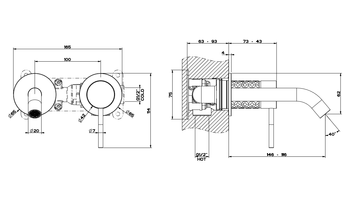 Gessi 316 Intreccio Bateria umywalkowa podtynkowa element zewnętrzny Steel Brushed 54183.239 / 54183239