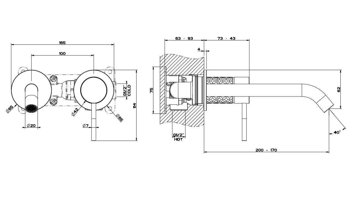 Gessi 316 Intreccio Bateria umywalkowa podtynkowa element zewnętrzny Steel Brushed 54186.239 / 54186239