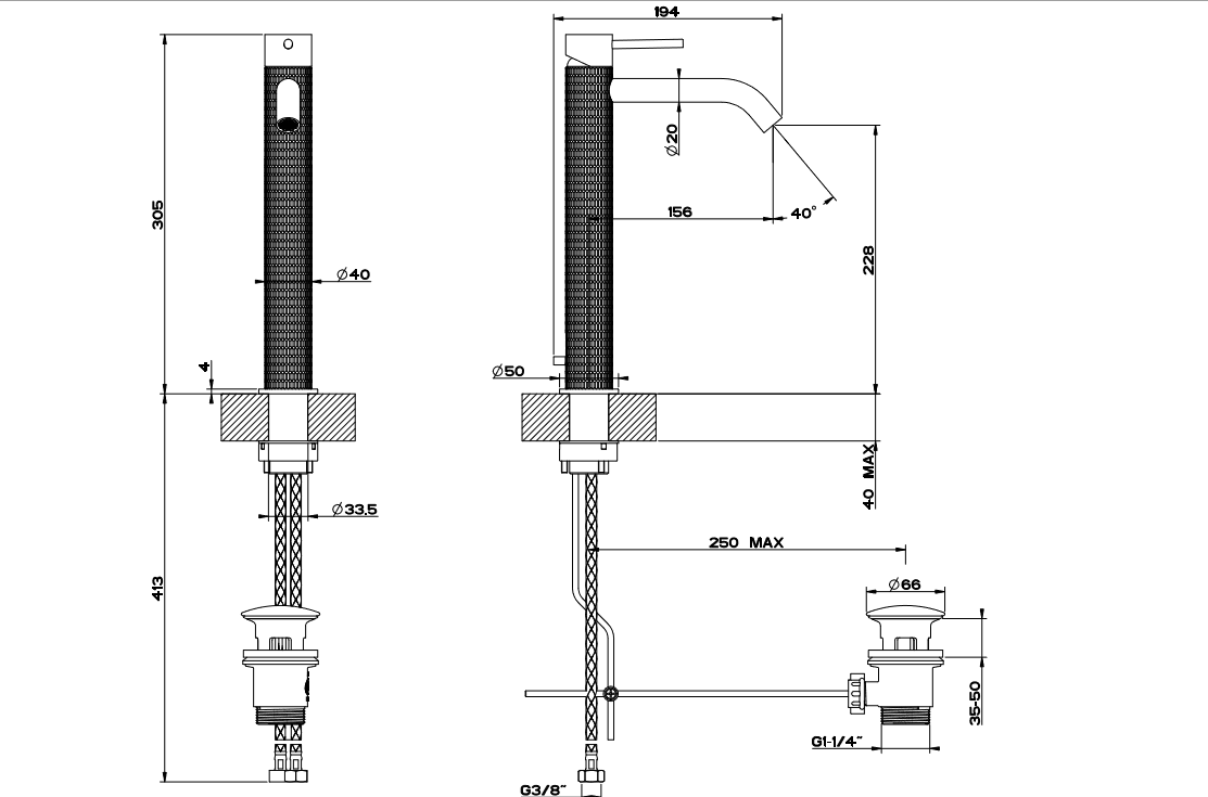 Gessi 316 Meccanica Bateria umywalkowa jednouchwytowa z korkiem Steel Brushed 54203.239 / 54203239