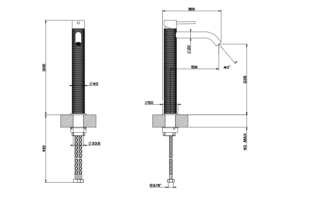Gessi 316 Meccanica Bateria umywalkowa jednouchwytowa bez korka Steel Brushed 54206.239 / 54206239