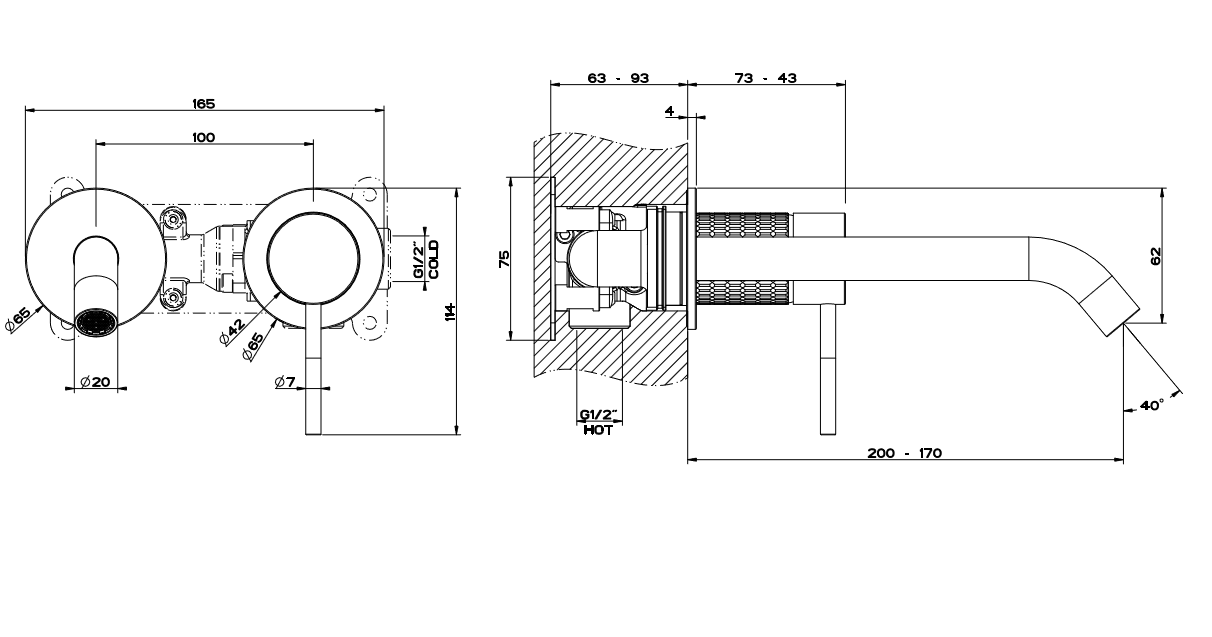 Gessi 316 Meccanica Bateria umywalkowa podtynkowa element zewnętrzny Steel Brushed 54286.239 / 54286239