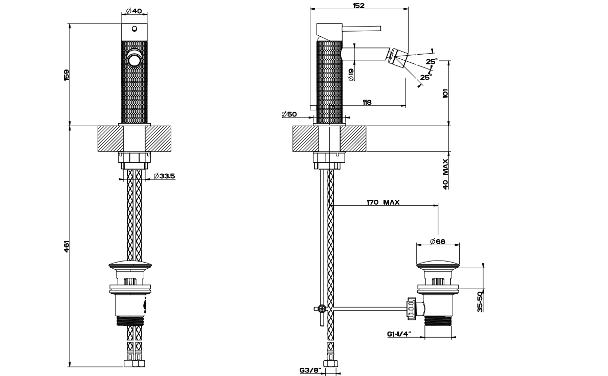 Gessi 316 Trame Bateria bidetowa jednouchwytowa Steel Brushed 54207.239 / 54207239