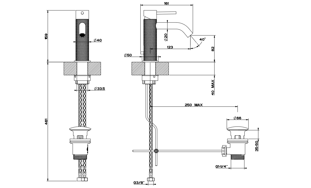 Gessi 316 Cesello Bateria umywalkowa jednouchwytowa z korkiem Steel Brushed 54401.239 / 54401239