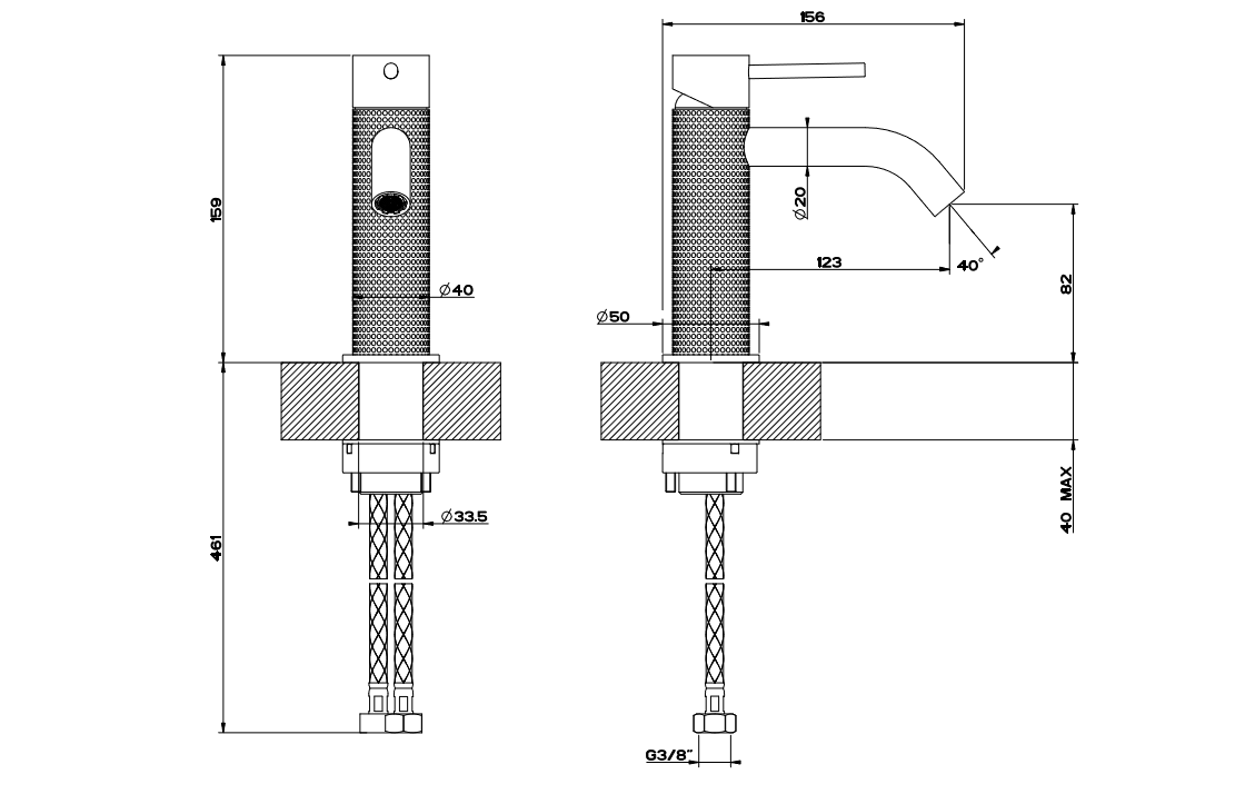 Gessi 316 Cesello Bateria umywalkowa jednouchwytowa bez korka Steel Brushed 54402.239 / 54402239
