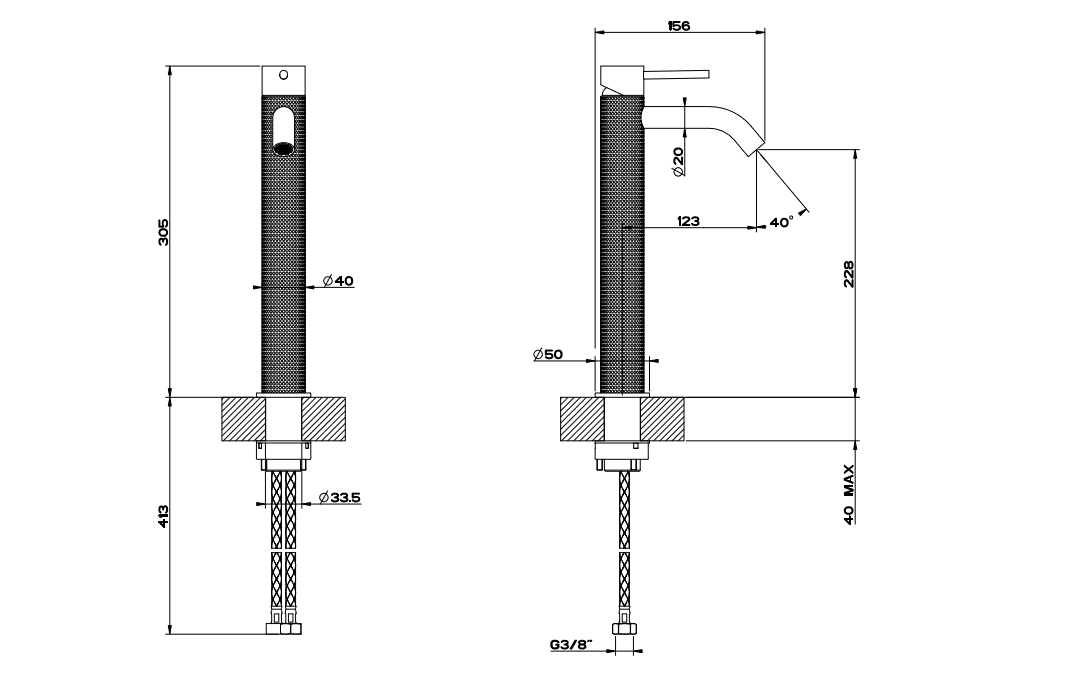 Gessi 316 Cesello Bateria umywalkowa jednouchwytowa bez korka Steel Brushed 54409.239 / 54409239