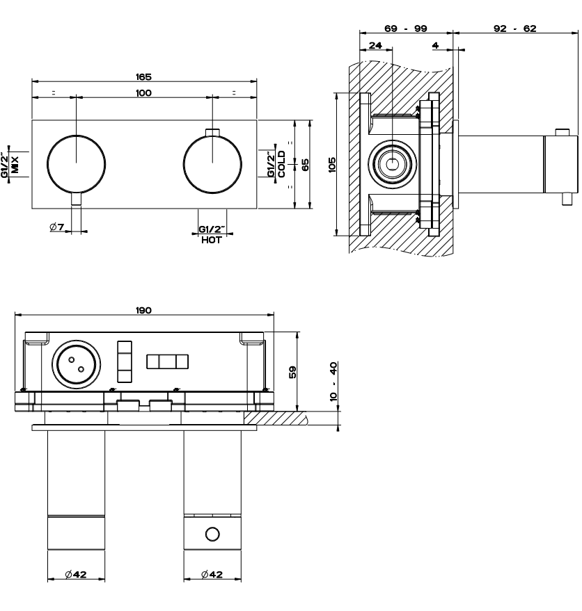 Gessi 316 Bateria Wannowo-Natryskowa element zewnętrzny Steel Brushed 54032.239 / 54032239