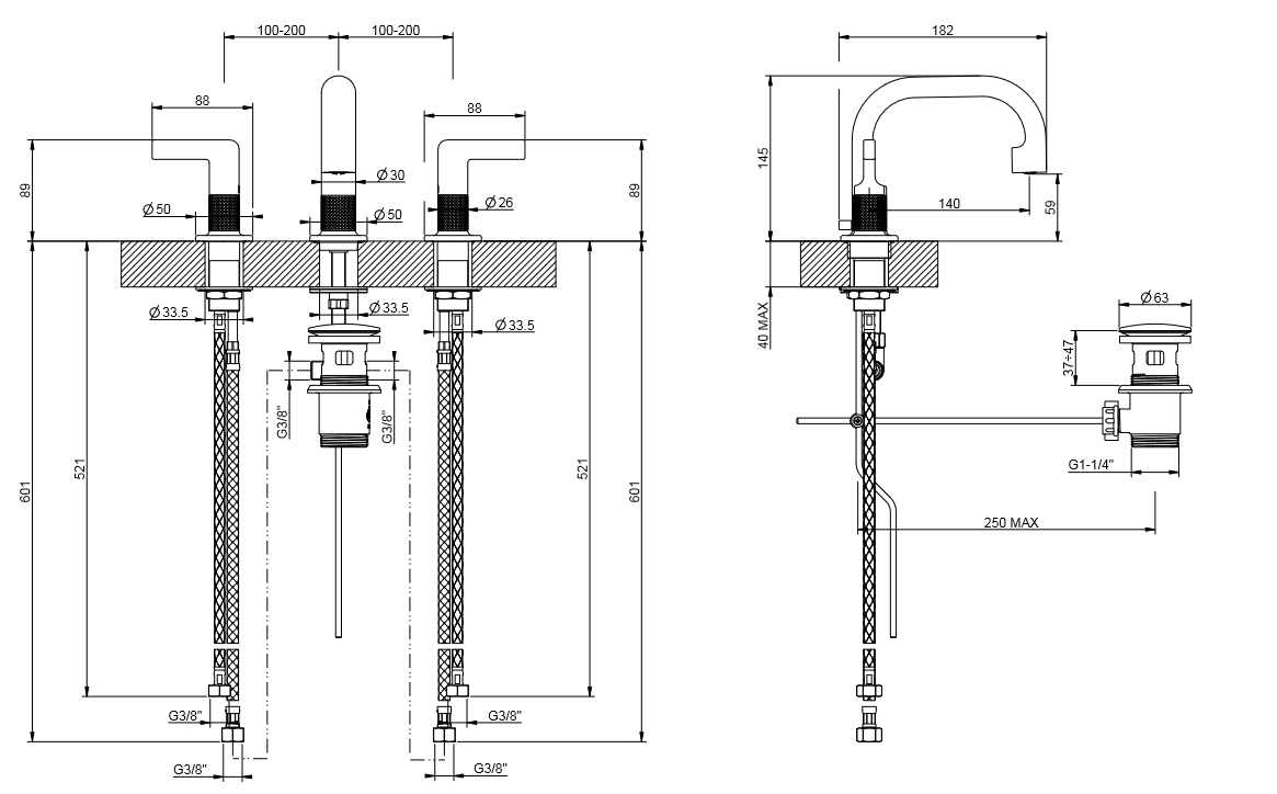 Gessi Inciso Bateria umywalkowa 3-otworowa bez korka Chrom 58012.031 / 58012031