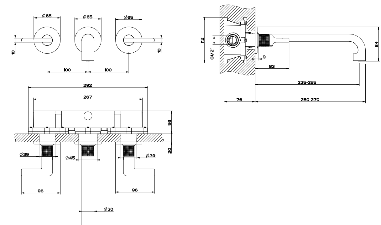 Gessi Inciso Bateria umywalkowa podtynkowa element zewnętrzny Chrom 58092.031 / 58092031