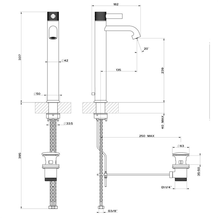 Gessi Inciso Bateria umywalkowa jednouchwytowa z korkiem Chrom 58003.031 / 58003031