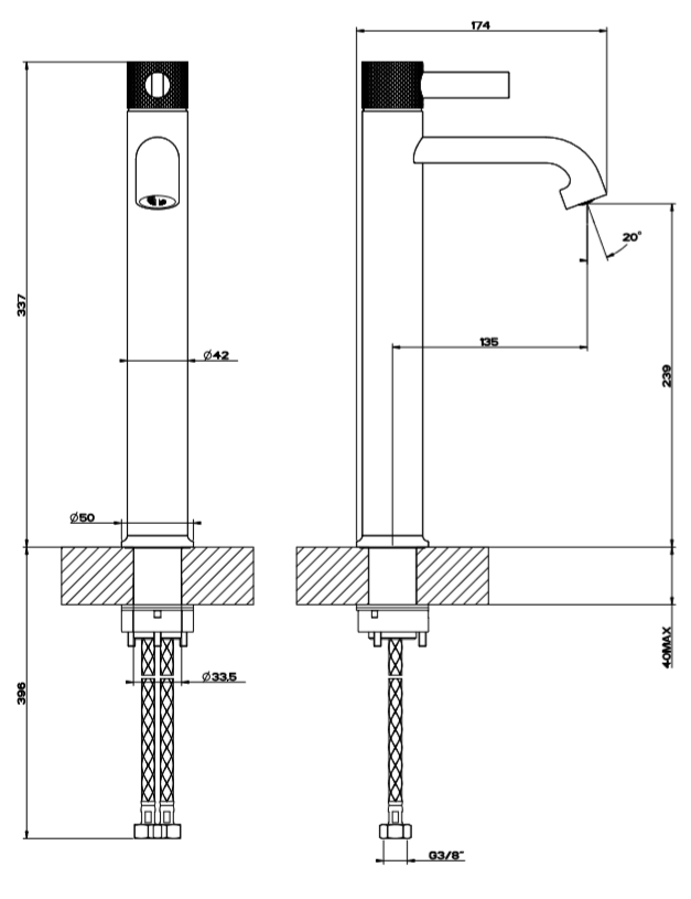 Zasięg wylewki: 135 mm