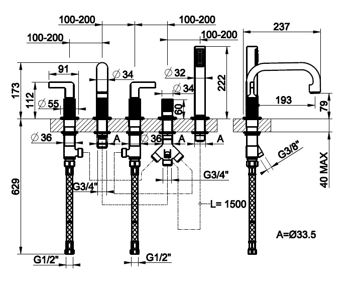 Gessi Inciso Bateria wannowa pięciootworowa Chrom 58040.031 / 58040031
