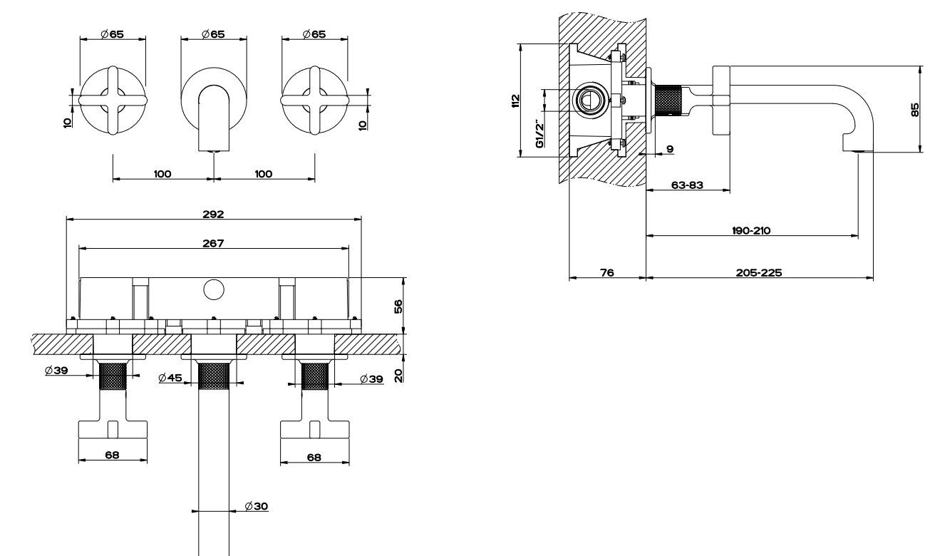 Gessi Inciso + Bateria umywalkowa podtynkowa element zewnętrzny Chrom 58190.031 / 58190031