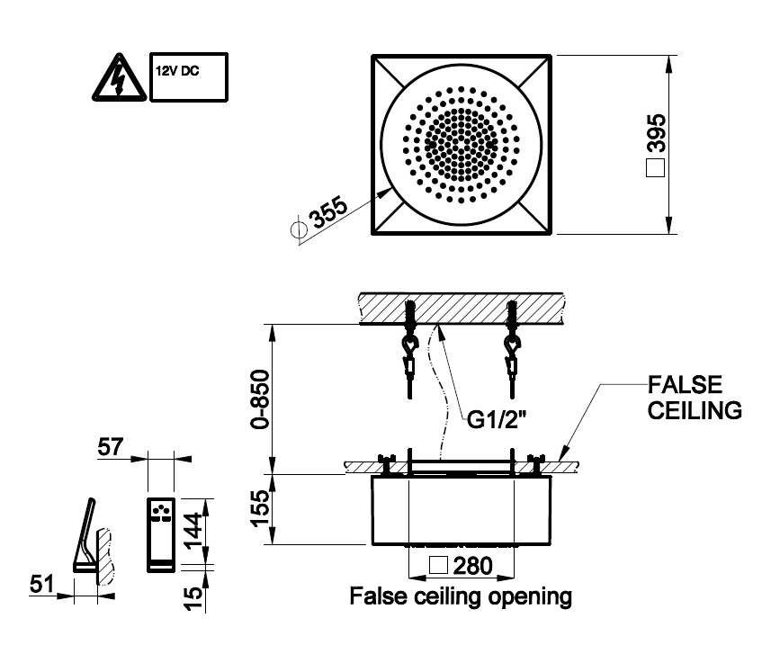 odsłonięty system prysznicowy z funkcją RAINFALL i efektem chromoterapii,