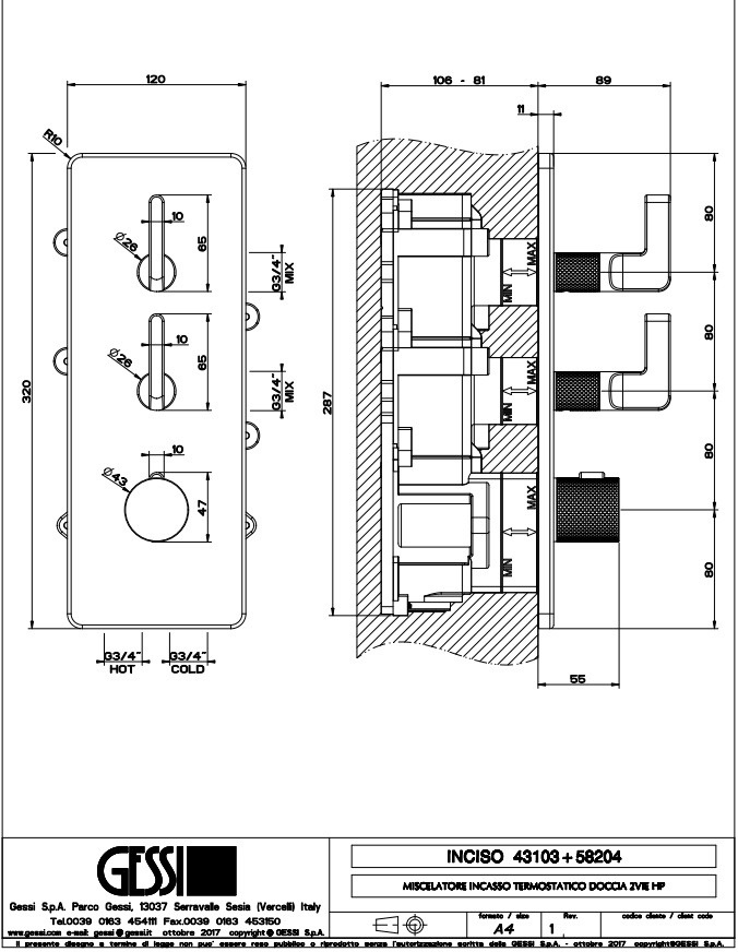 Gessi Inciso Wellness Bateria natryskowa termostatyczna podtynkowa Chrom 58204.031 / 58204031Bateria natryskowa termostatyczna
