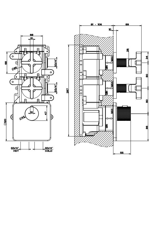 Gessi Inciso Wellness Bateria natryskowa termostatyczna podtynkowa Chrom 58344.031 / 58344031Bateria natryskowa termostatyczna