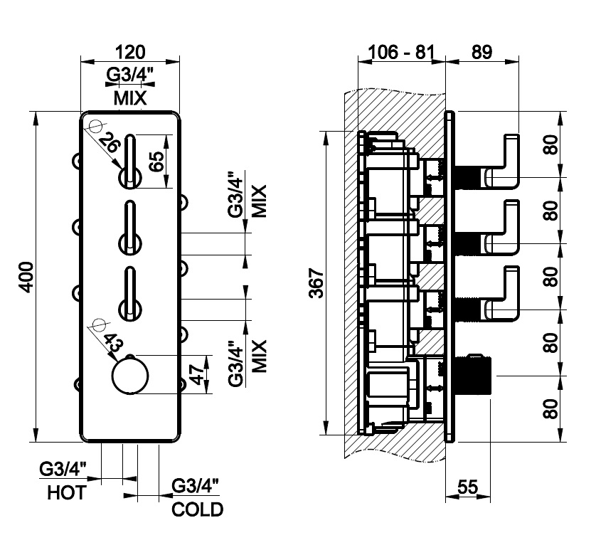 Gessi Inciso Wellness Bateria natryskowa termostatyczna podtynkowa Chrom 58206.031 / 58206031Bateria natryskowa termostatyczna