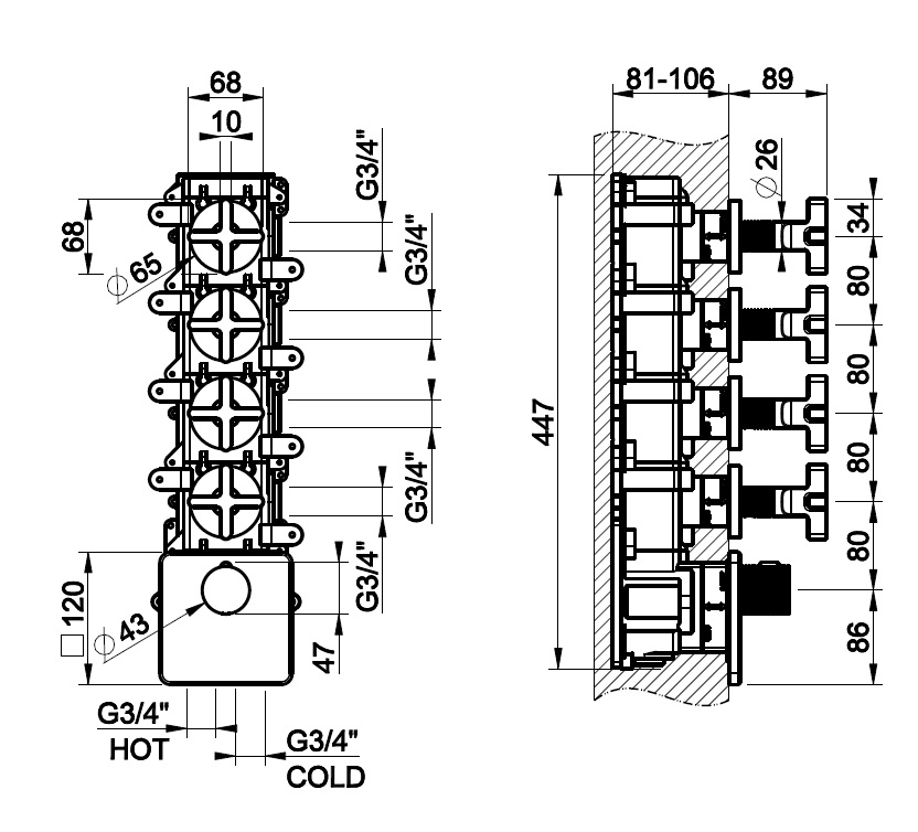 Gessi Inciso Wellness Bateria natryskowa termostatyczna podtynkowa Chrom 58348.031 / 58348031Bateria natryskowa termostatyczna