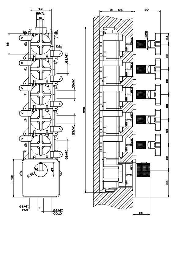 Gessi Inciso Wellness Bateria natryskowa termostatyczna podtynkowa Chrom 58350.031 / 58350031Bateria natryskowa termostatyczna