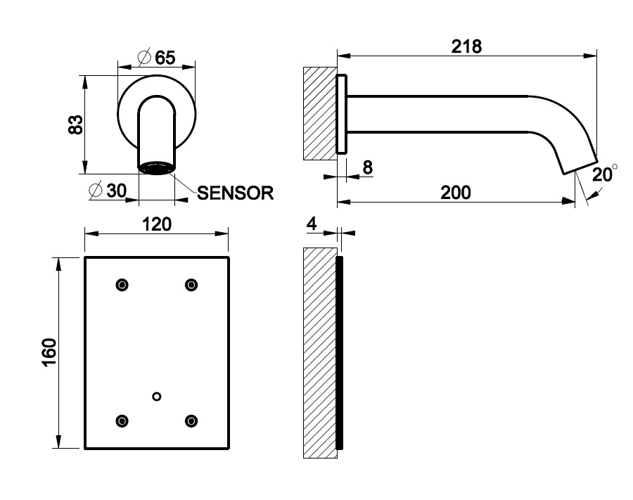 Wymiary:wysięg wylewki: 200 mm