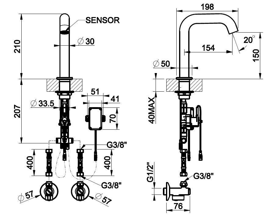 Elektroniczny bateria umywalkowa z regulacją temperatury i natężenia przepływu wody