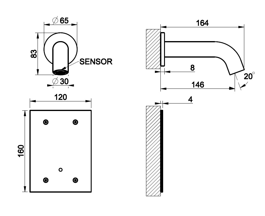 Część zewnętrzna do ściennego mieszacza elektronicznego.Kolor: Steel Brushed