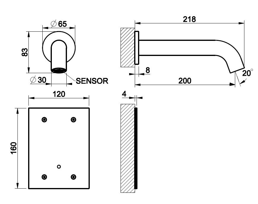 Część zewnętrzna do ściennego mieszacza elektronicznego.Kolor: Steel Brushed