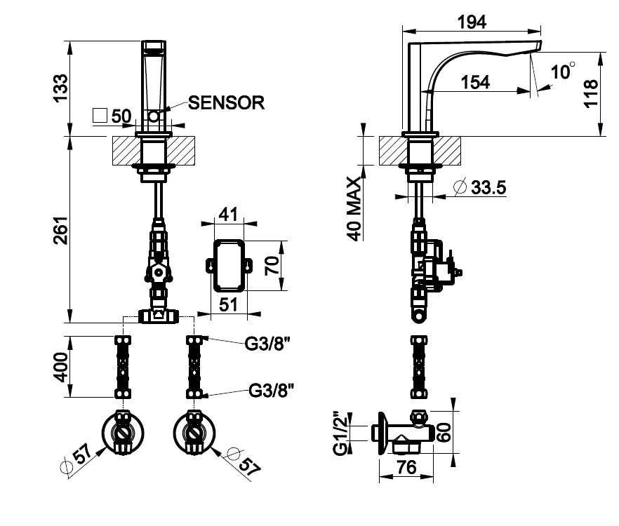 Elektroniczny bateria umywalkowa z regulacją temperatury i natężenia przepływu wody