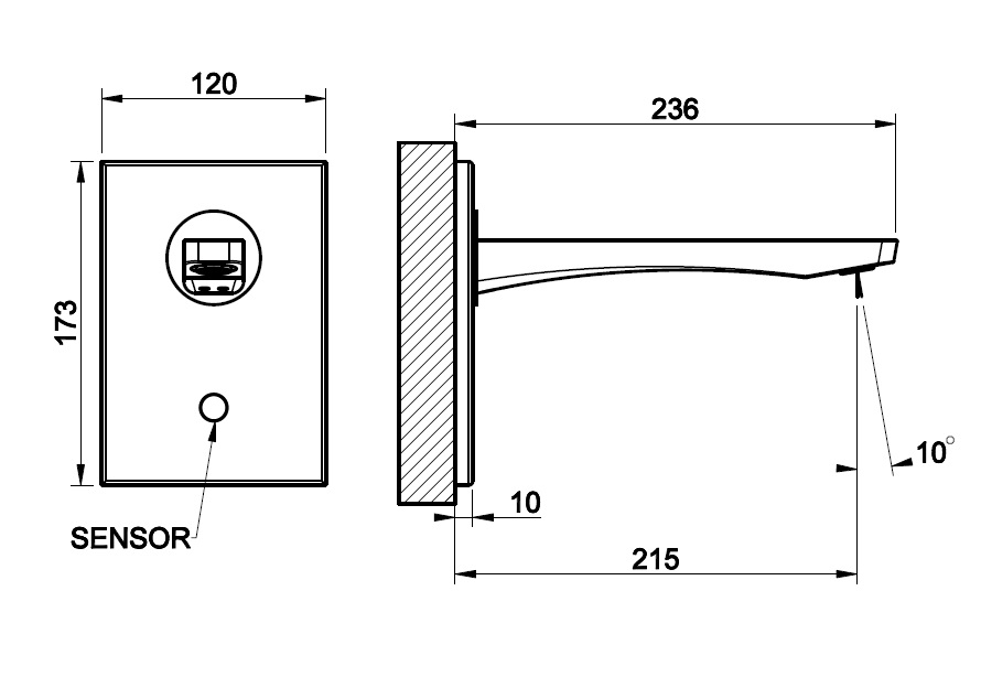 Wymiary: szerokość rozety: 120 mm wysokość rozety: 160 mm wysięg wylewki: 215 mm
