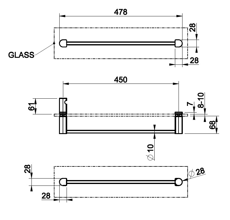 Gessi Rilievo Wieszak na ręcznik 450 mm do mocowania na szkle Chrom 59564.031 / 59564031