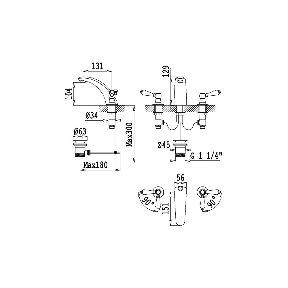 Bruma Classico Bateria umywalkowa 3-otworowa z korkiem chrom 11833201