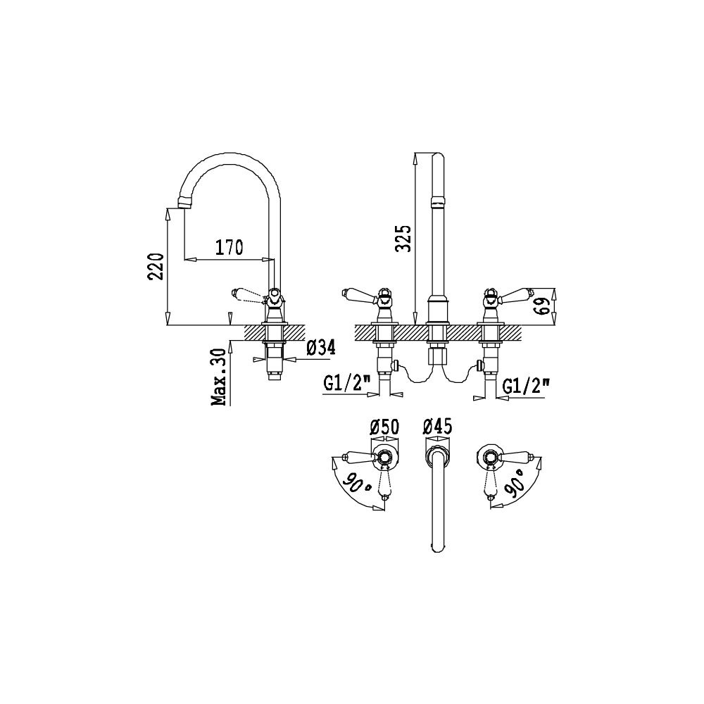 Bruma Classico Bateria umywalkowa 3-otworowa bez korka chrom 11824001