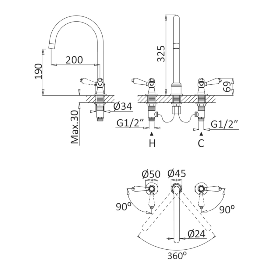 • Montaż: 3-otworowy