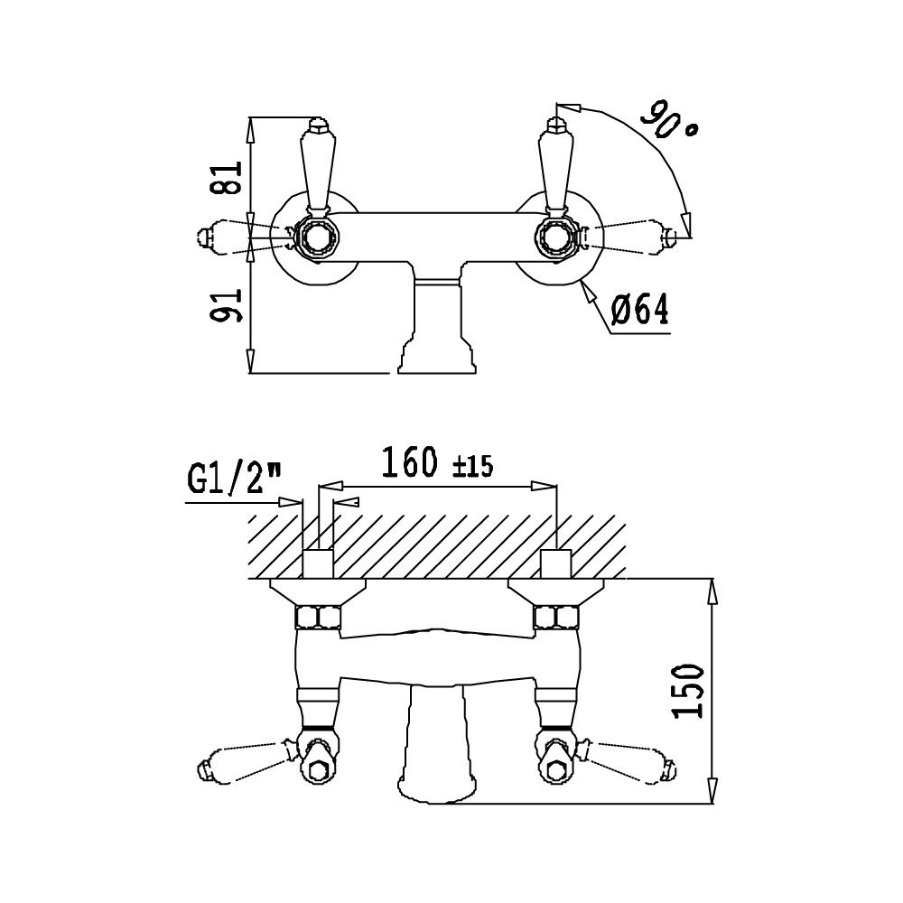 Bruma Classico Bateria wannowa Naścienna chrom 11875001